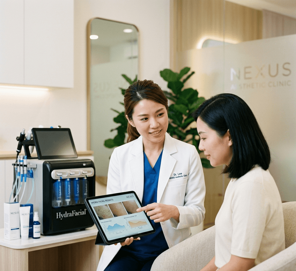 At Aesthetic Clinic Nexus, our HydraFacial treatment in Malaysia is delivered through doctor-led protocols designed for Asian skin types living in humid, high-UV climates. The focus is not only on glow — but on long-term skin balance, hydration, and barrier health.