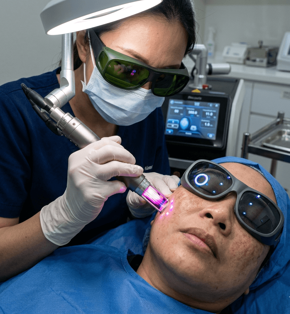 Yellow laser targets vascular and inflammatory pathways with minimal thermal spread — suitable for sensitive Asian skin types. Melasma Treatment with Pico Laser