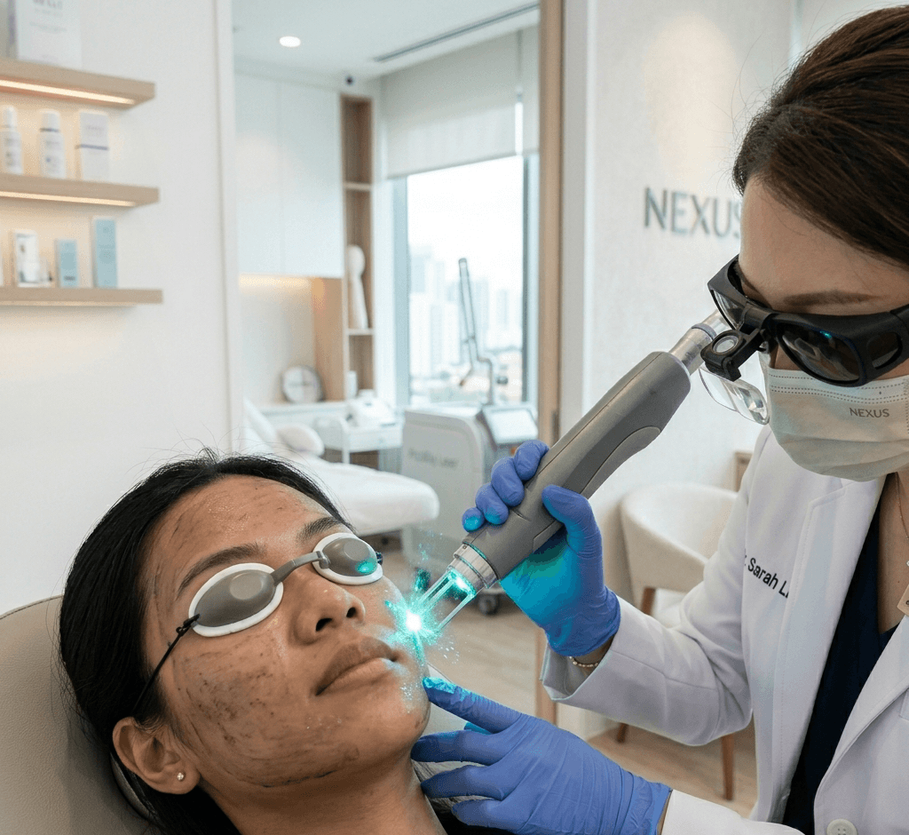 At Aesthetic Clinic Nexus, low-energy settings are used to gradually reduce melasma while minimising the risk of rebound pigmentation — a key concern for Asian skin.