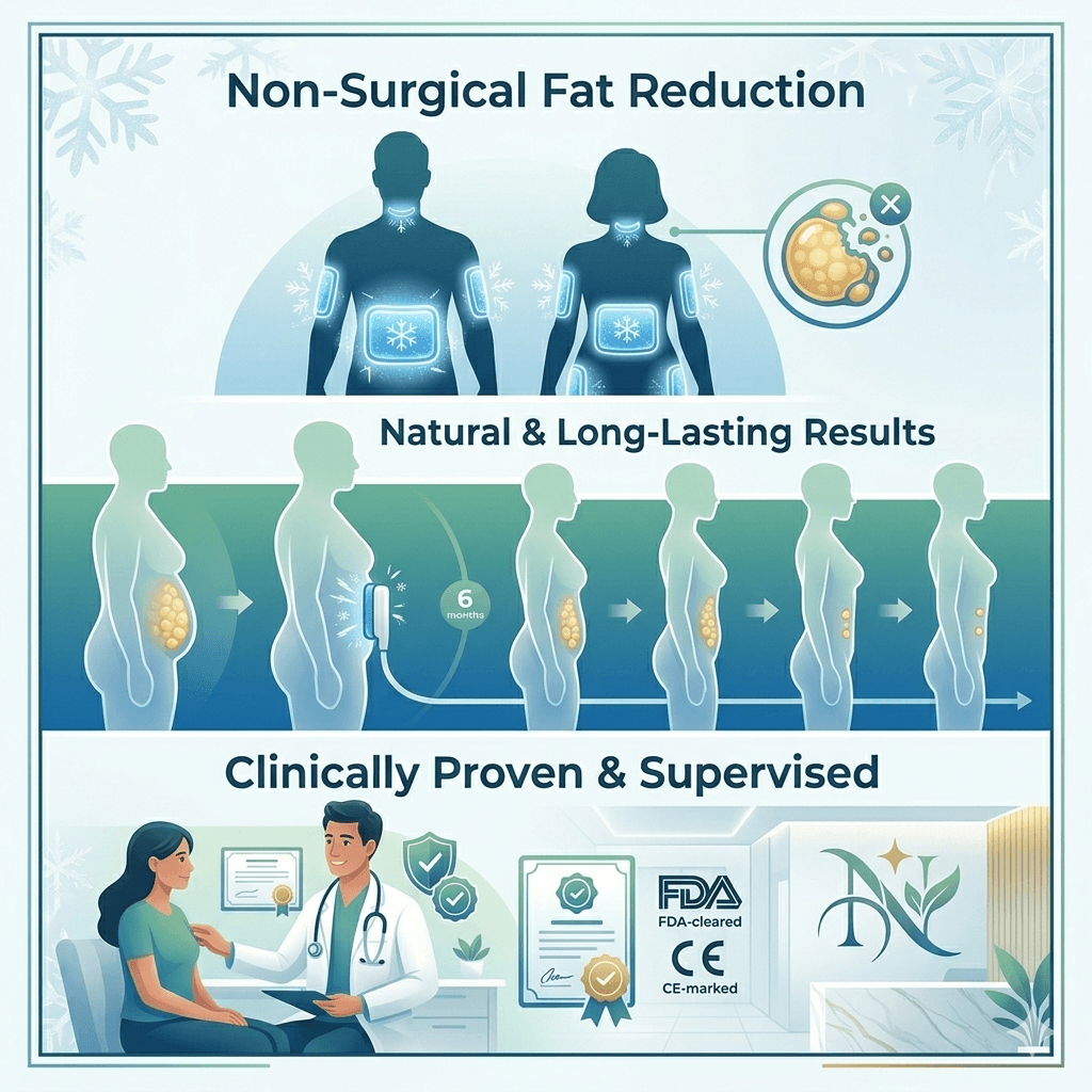 CoolSculpting is a clinically proven, non-surgical fat reduction treatment designed to address stubborn fat deposits that are resistant to diet and exercise. At Aesthetic Clinic Nexus, Kuala Lumpur, we offer doctor-led CoolSculpting treatments using advanced cooling technology to safely and effectively contour the body with natural, long-lasting results.
